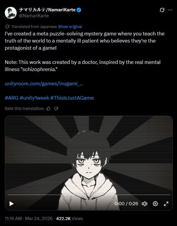 Le Dr NamariKarte a développé This is Just a Game, basé sur les symptômes de la schizophrénie, jouable sur navigateur, malheureusement uniquement disponible en japonais :