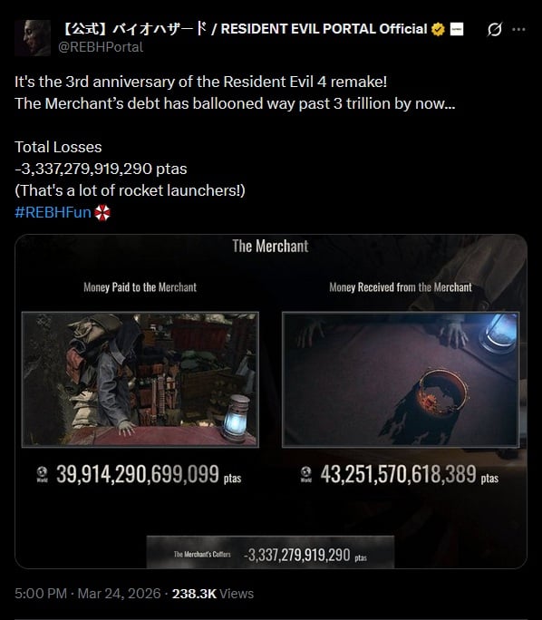 Des chiffres à propos du marchand de Resident Evil 4 remake :