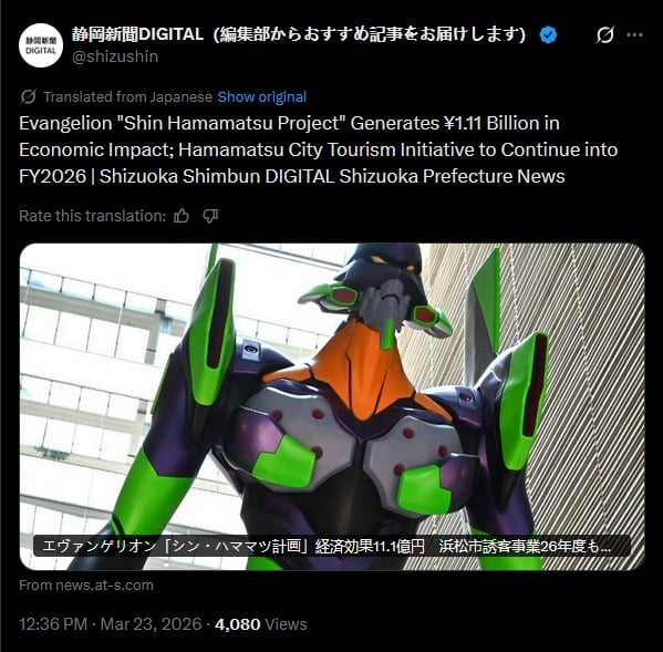 Construire de statues de Giant Neon Genesis Evangelion augmente les revenus touristiques :