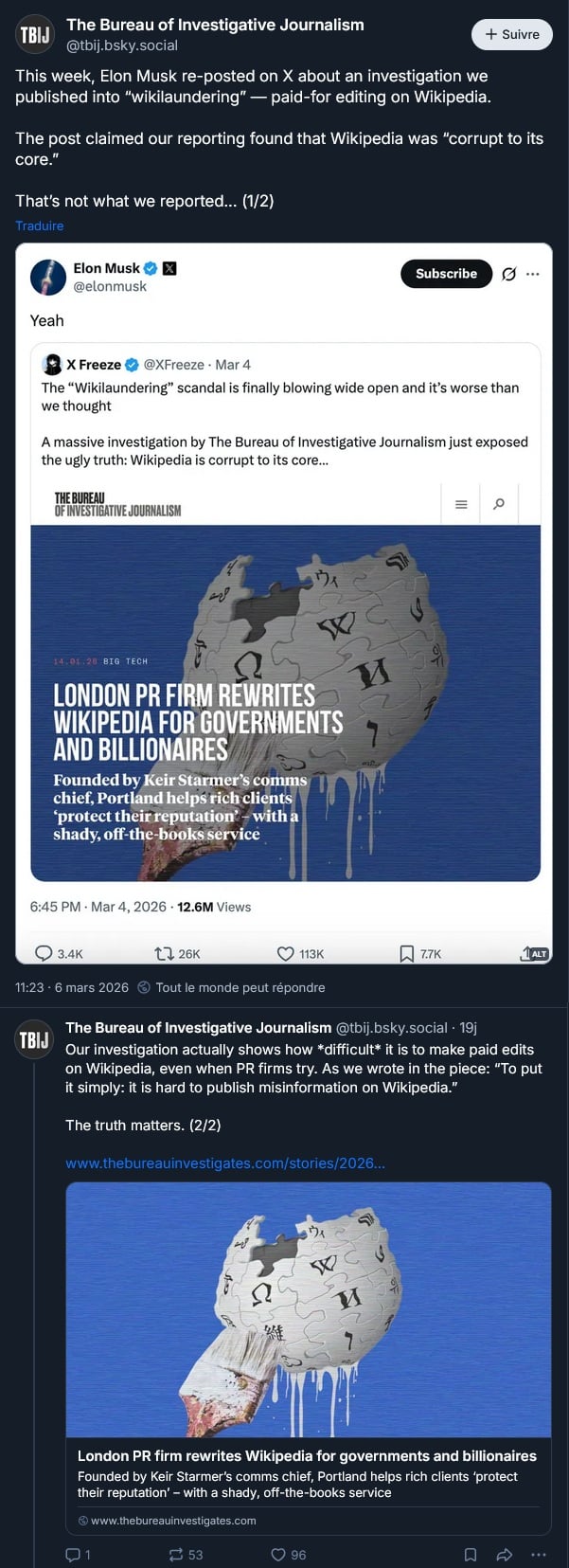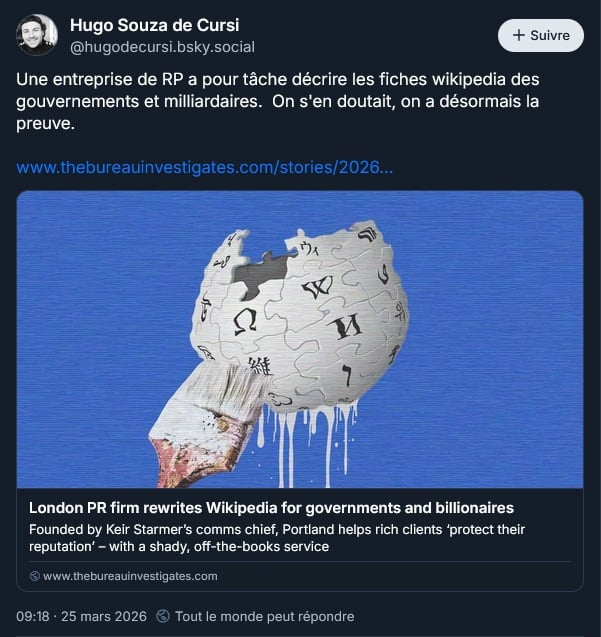 Une entreprise de relation publique ré-écrit des fiches Wikipédia de gouvernements et milliardaires :