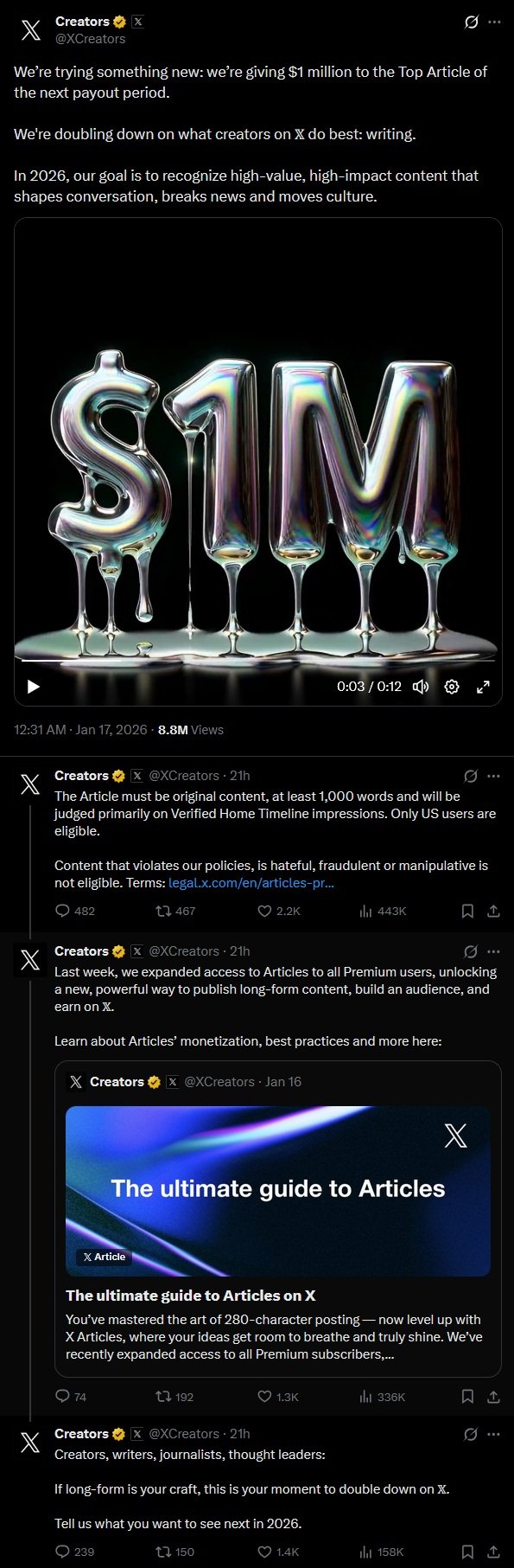 Alors, avec la propension de l’algorithme de Twitter à mettre en avant le contenu nazi, raciste ou encensant Elon … Comment promettre 1 million de dollars à l’article ayant le plus de vues ce mois-ci pourrait-il partir en couille ? D’ailleurs, Elon a promis de rendre le nouvel algorithme de Twitter public la semaine prochaine :