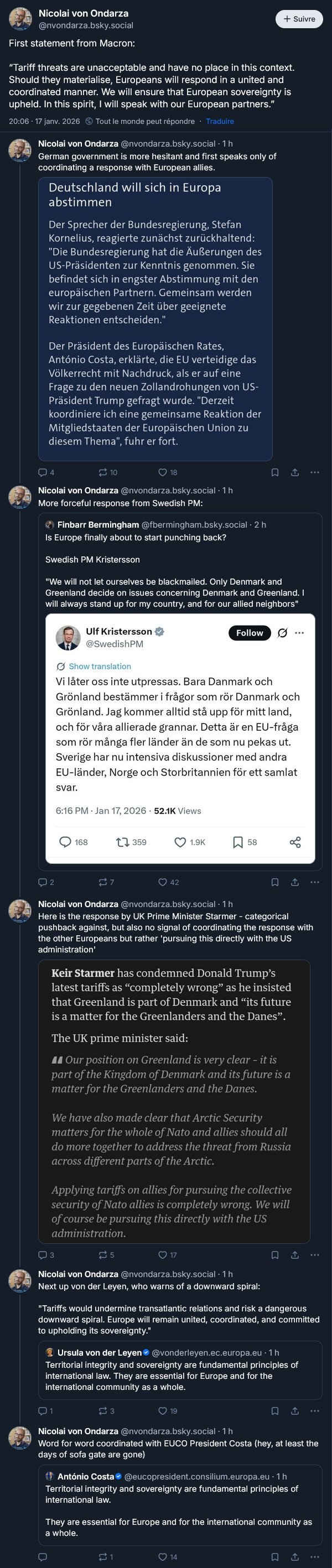 Donald a annoncé 10% de taxes aux états-uniens sur les biens importés de 8 pays européens qui veulent pas céder à sa demande capricieuse d’avoir le Groenland à partir du 1er Février :