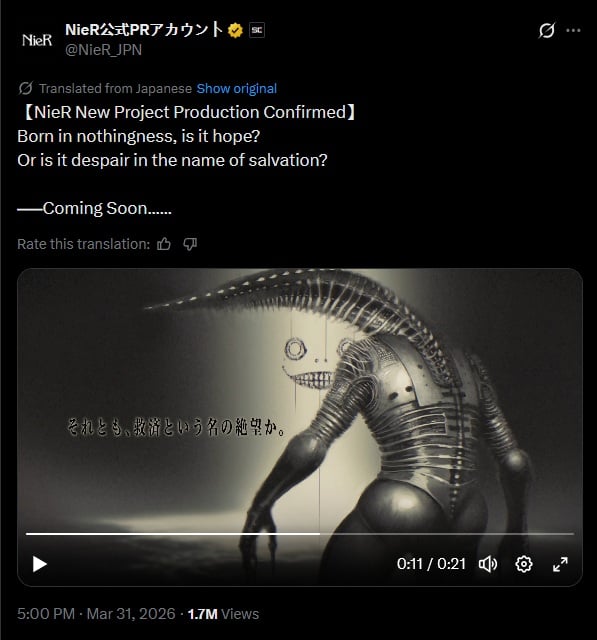 Yoko Taro a annoncé Nier: Cosmic Horror. Qui est quelque chose. Ptêt un jeu, mais ptêt ben qu’non :