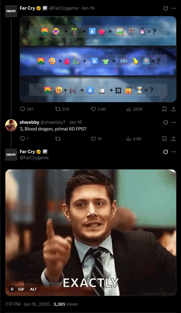 Le 21 Janvier sera le jour de la mise à jour des 60fps pour Far Cry 3. Et ce sera aussi prochainement la même chose pour Far Cry 3: Blood Dragon et Far Cry Primal :