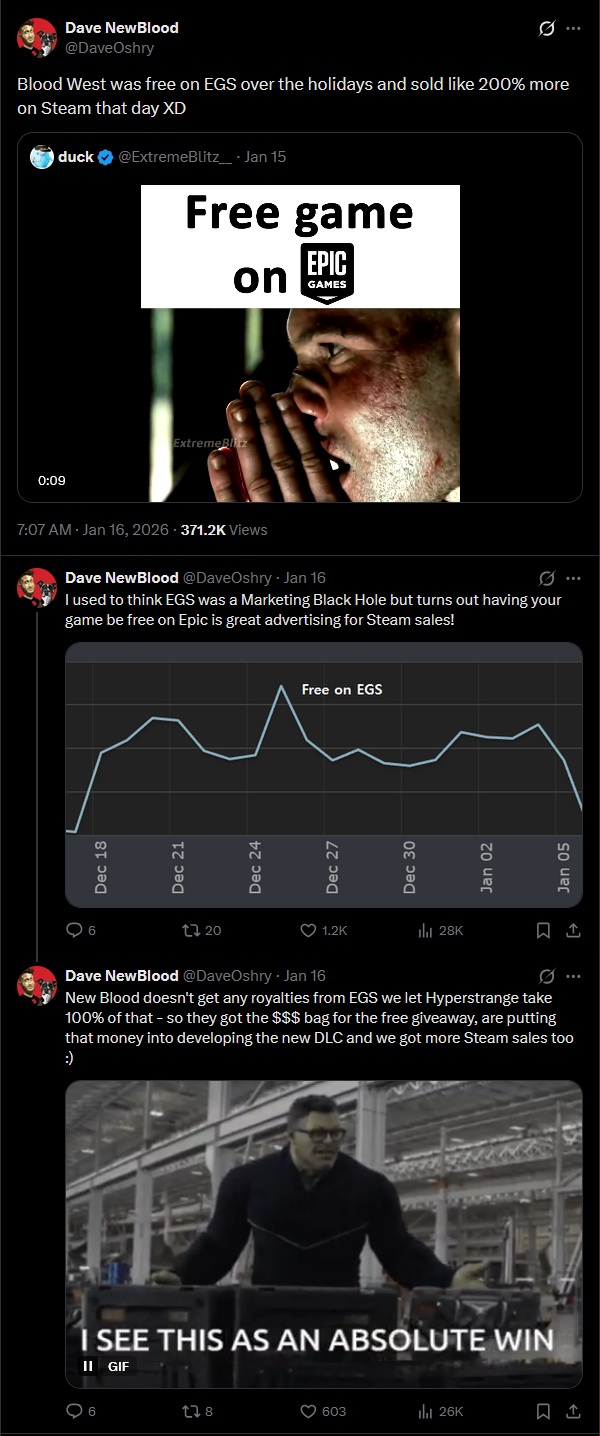 Le jour où Blood West a été offert sur l’Epic Games Store, les ventes ont été multipliées par 3 sur Steam :