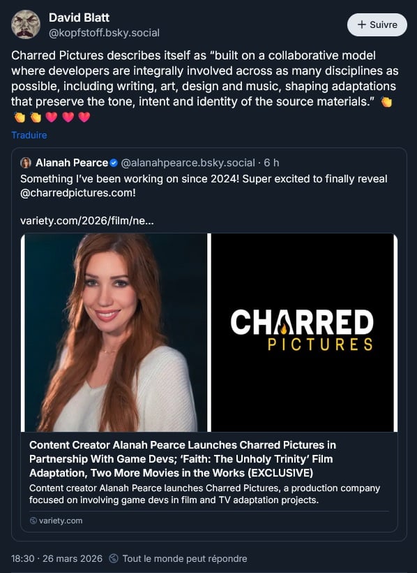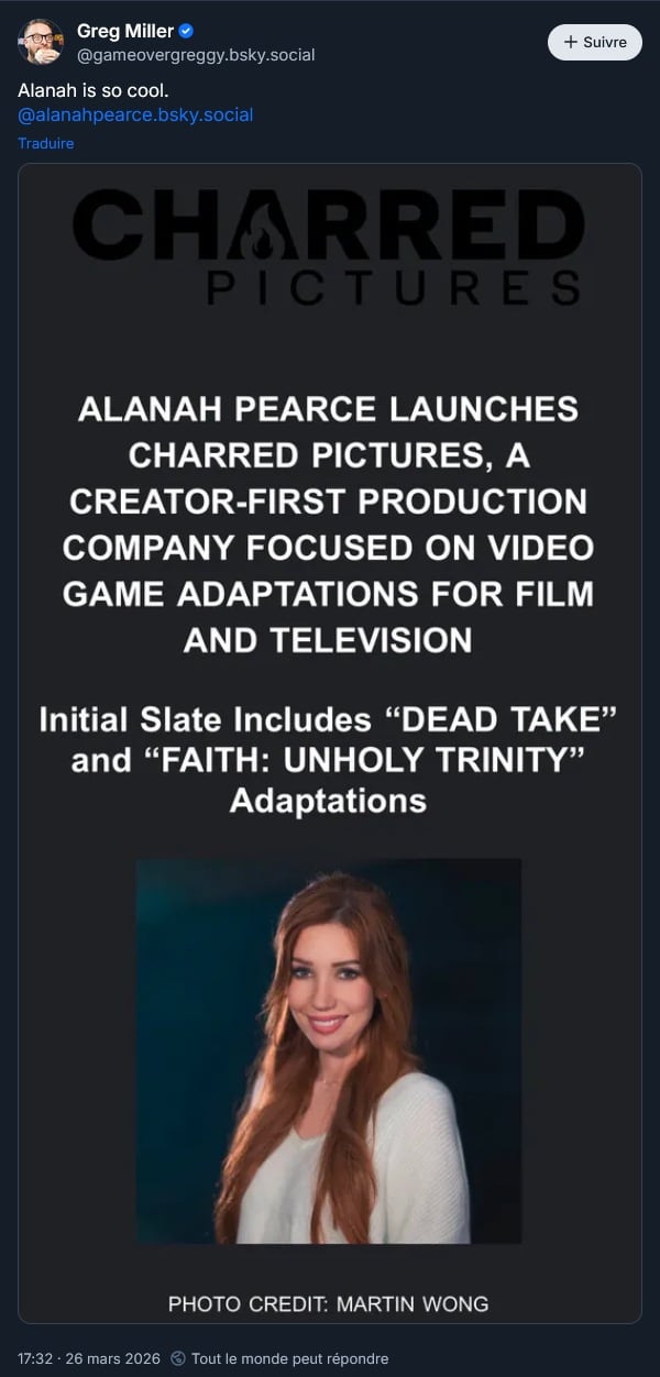 Alanah Pearce lance Charred Pictures, une compagnie de production centrés sur les adaptations de jeux vidéo :