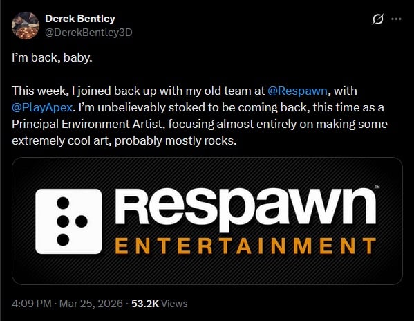 Derek Bentley a été rembauché par Respawn après l’avoir quitté pour développer Highguard :