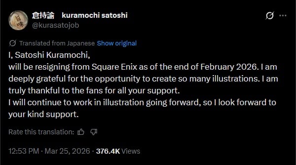 Satoshi Kuramochi a quitté Square Enix en Février :