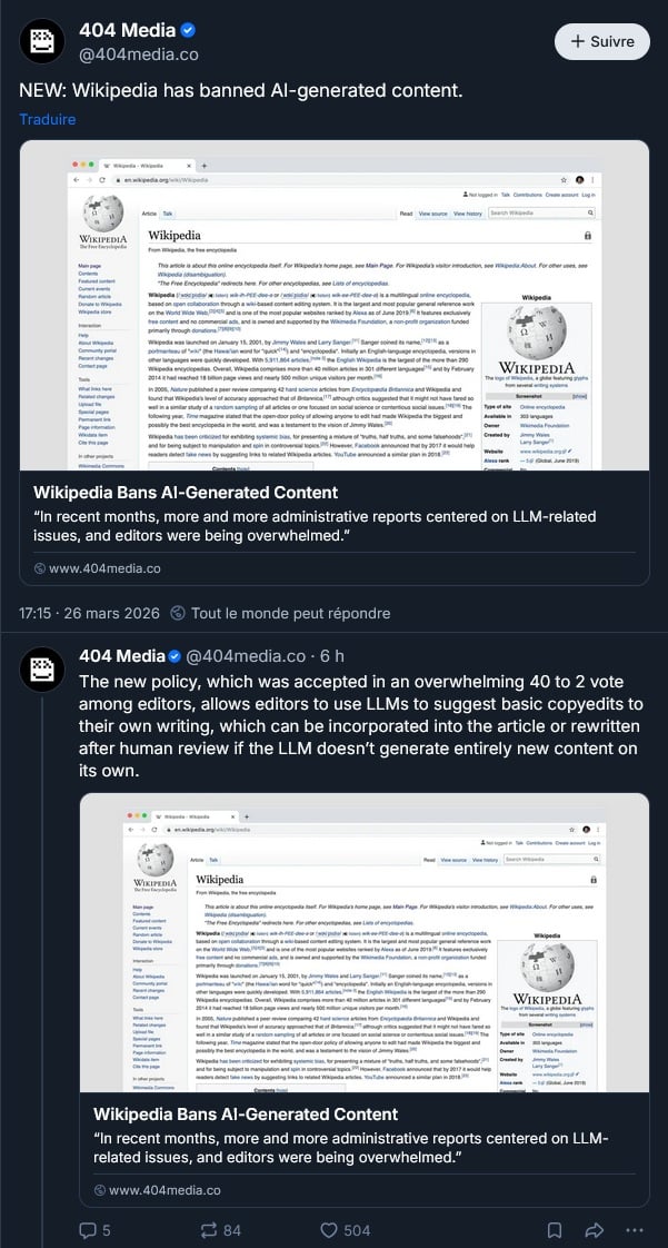 https://www.404media.co/wikipedia-bans-ai-generated-content/