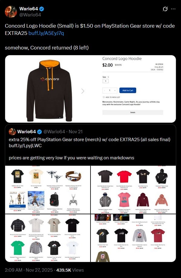 PlayStation a eu aujourd’hui des hoodies Concord en vente à 2$, uniquement en S :