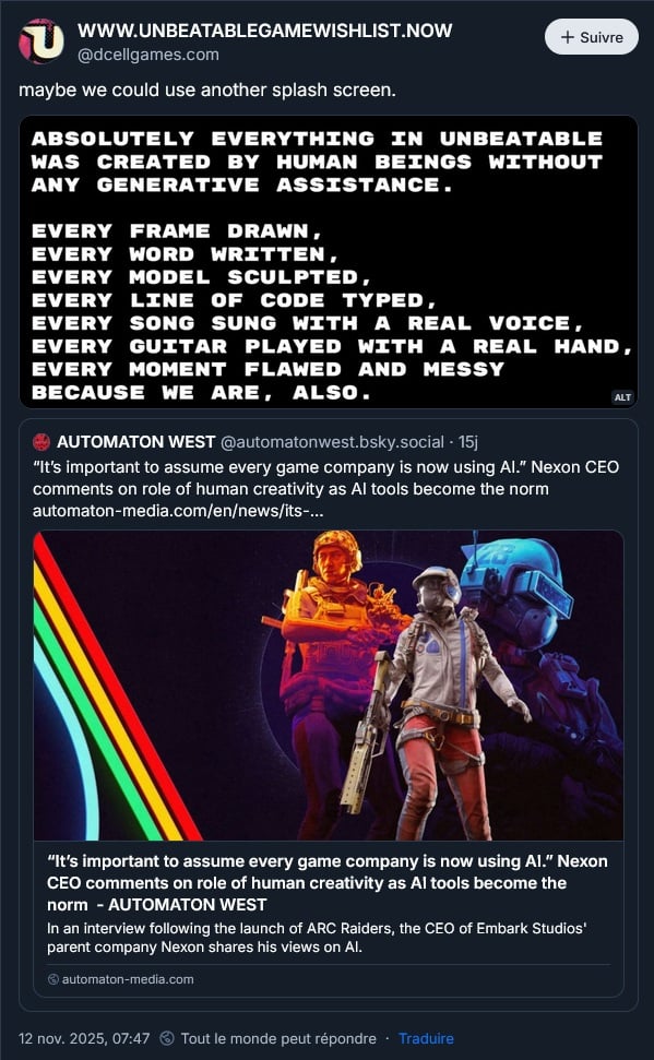 Le studio D-Cell Games (Unbeatable) n’aime pas non plus l’IA :