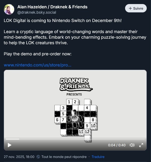 Le jeu de réflexion LOK Digital sort le 9 Décembre sur Switch 1 :