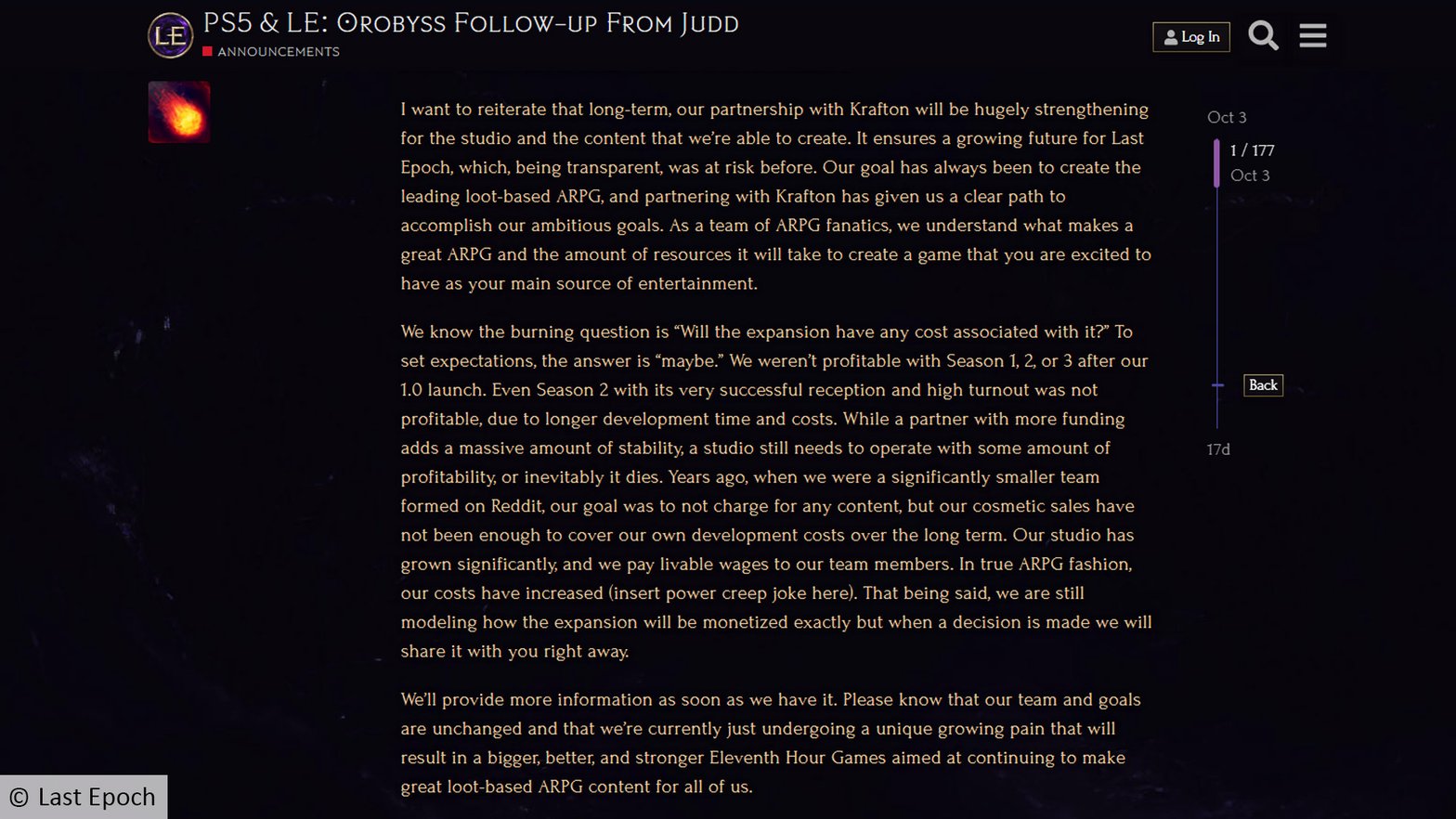 Roadmap pour la suite de l’action-RPG Last Epoch :