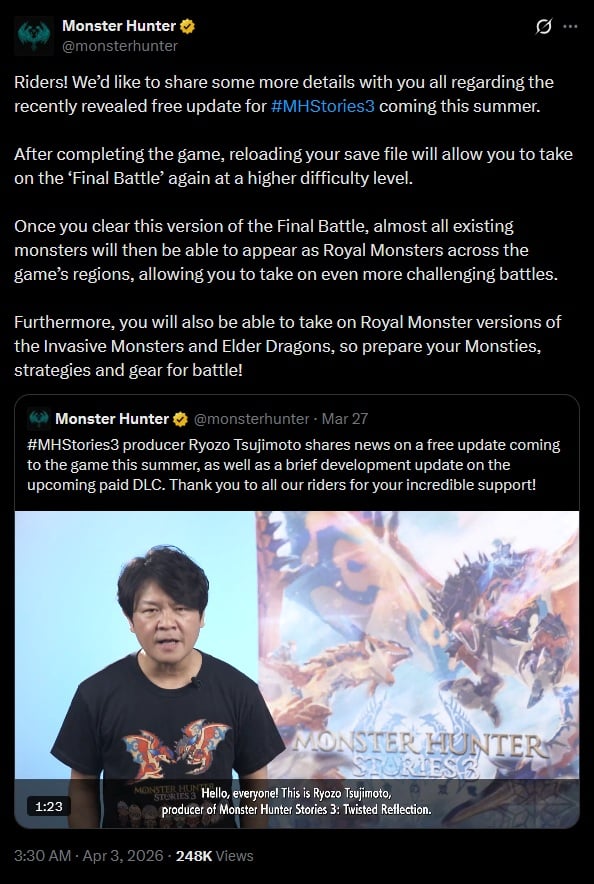 Des infos à propos de la future mise à jour Royal Monsters de cet Été pour Monster Hunter Stories 3: Twisted Reflection :