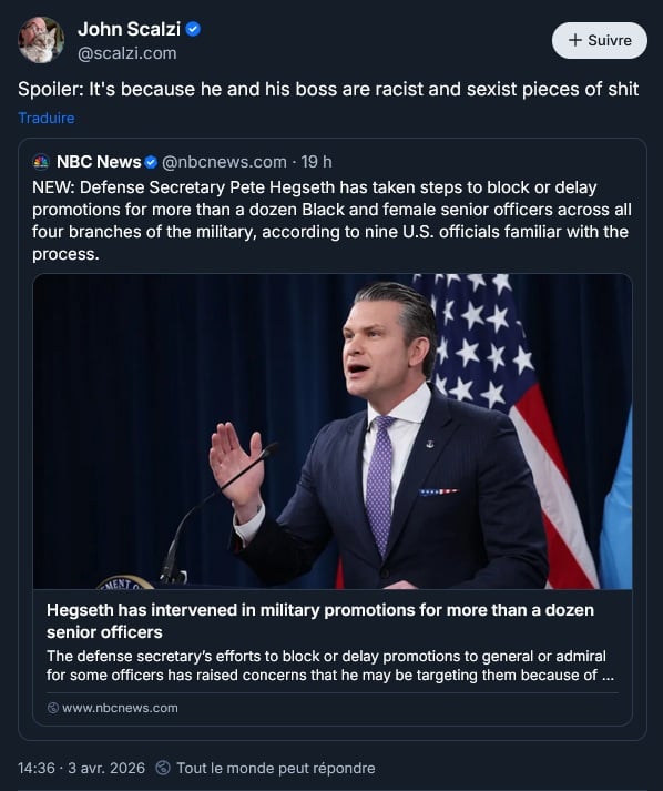 Pete Hegseth bloque ou retarde les promotions des femmes et des noirs :