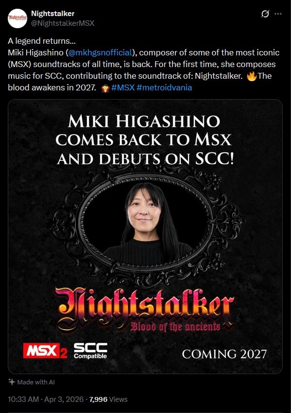 La compositrice Miki Higashino va composer quelques morceaux de la bande-son sur le projet homebrew Nightstalker pour MSX 2 :
