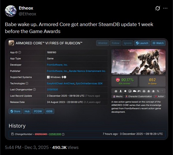 https://www.videogamer.com/news/armored-core-6-steamdb-update-before-the-game-awards/