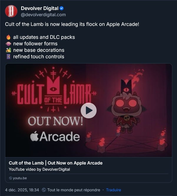 Cult of The Lamb est sorti aujourd’hui sur Apple Arcade :