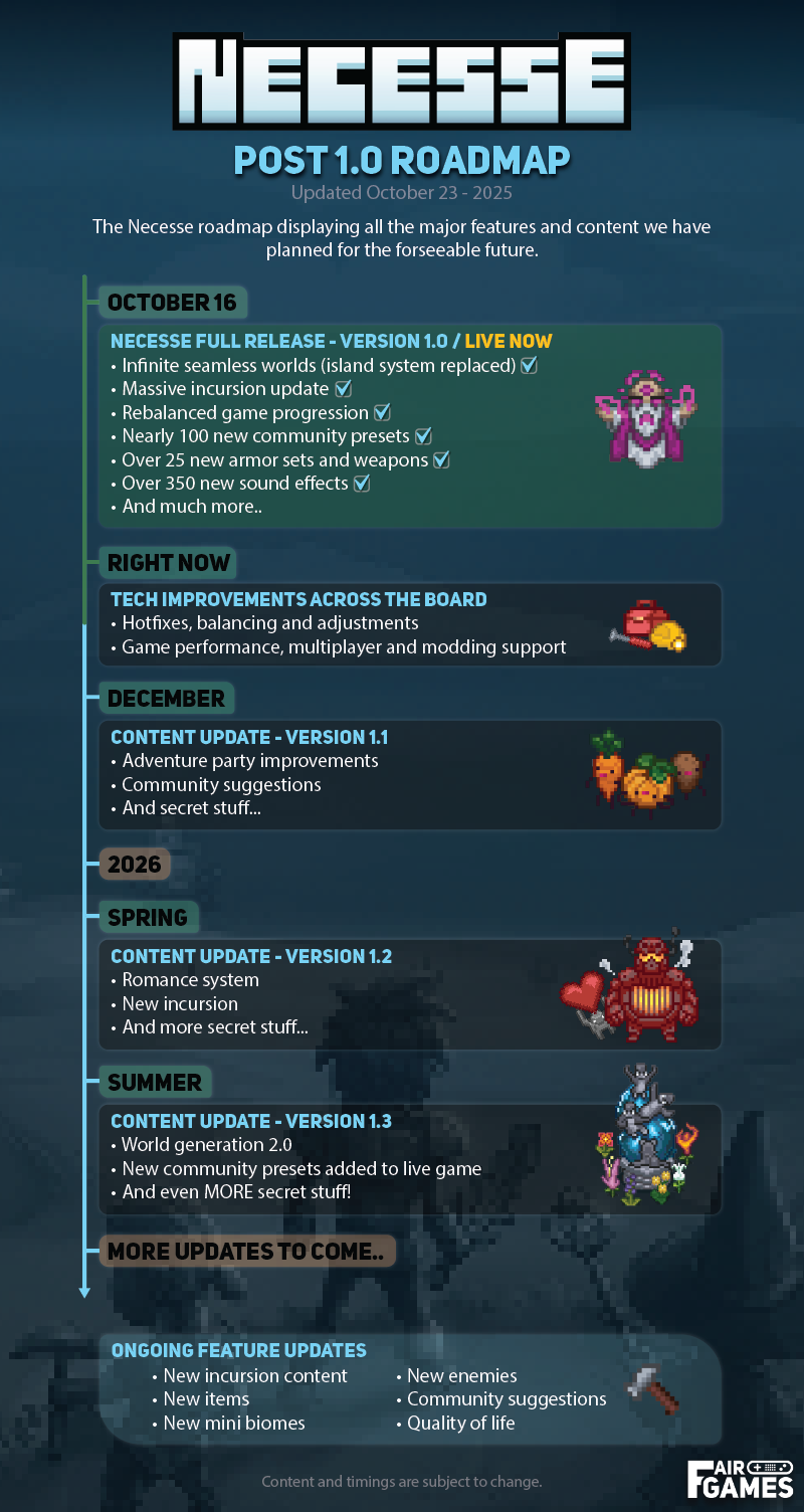 Roadmap pour le jeu de survie-craft Necesse :